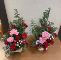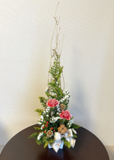 アレンジメントに入っている若松をご覧になると、「今日はお正月のお花を作るの?」とわくわくした面持ちでお話が弾みます。